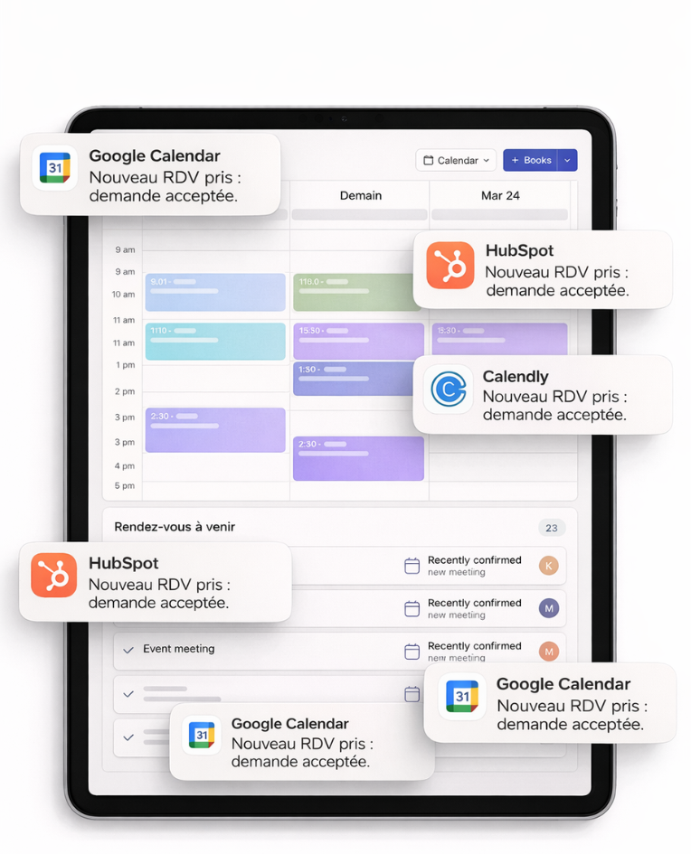 Une fois qualifié, le prospect choisit son créneau directement dans votre calendrier.